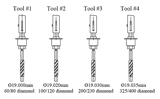smaller diamond particles that have finer surface finish capabilities, to be used progressively for maximum efficiency.