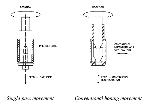 The singlepass bore finishing Processo involves a series of preset diamond coated tools that get passed through a bore with a single inandout stroke movement while